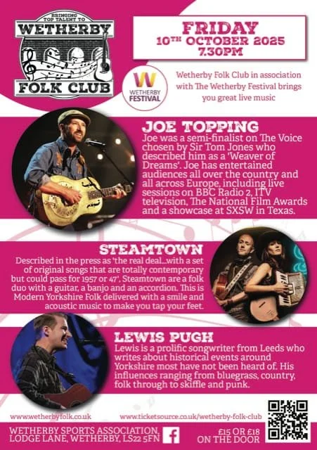John Cuthbertson 03/09/2025 John Cuthbertson 03/09/2025 Lindisfarne in Wetherby Read More John Cuthbertson 03/09/2025 John Cuthbertson 03/09/2025 Wetherby Folk at the Festival Read More John Cuthbertson 20/08/2025 John Cuthbertson 20/08/2025 Landscape Artist Success Read More John Cuthbertson 17/08/2025 John Cuthbertson 17/08/2025 Wetherby Folk Club Read More John Cuthbertson 07/05/2025 John Cuthbertson 07/05/2025 Guys and Dolls Read More John Cuthbertson 06/02/2025 John Cuthbertson 06/02/2025 Kemps Bookshop invites Authors Read More John Cuthbertson 14/01/2025 John Cuthbertson 14/01/2025 Wetherby Privas Twinning Association Read More Older Posts