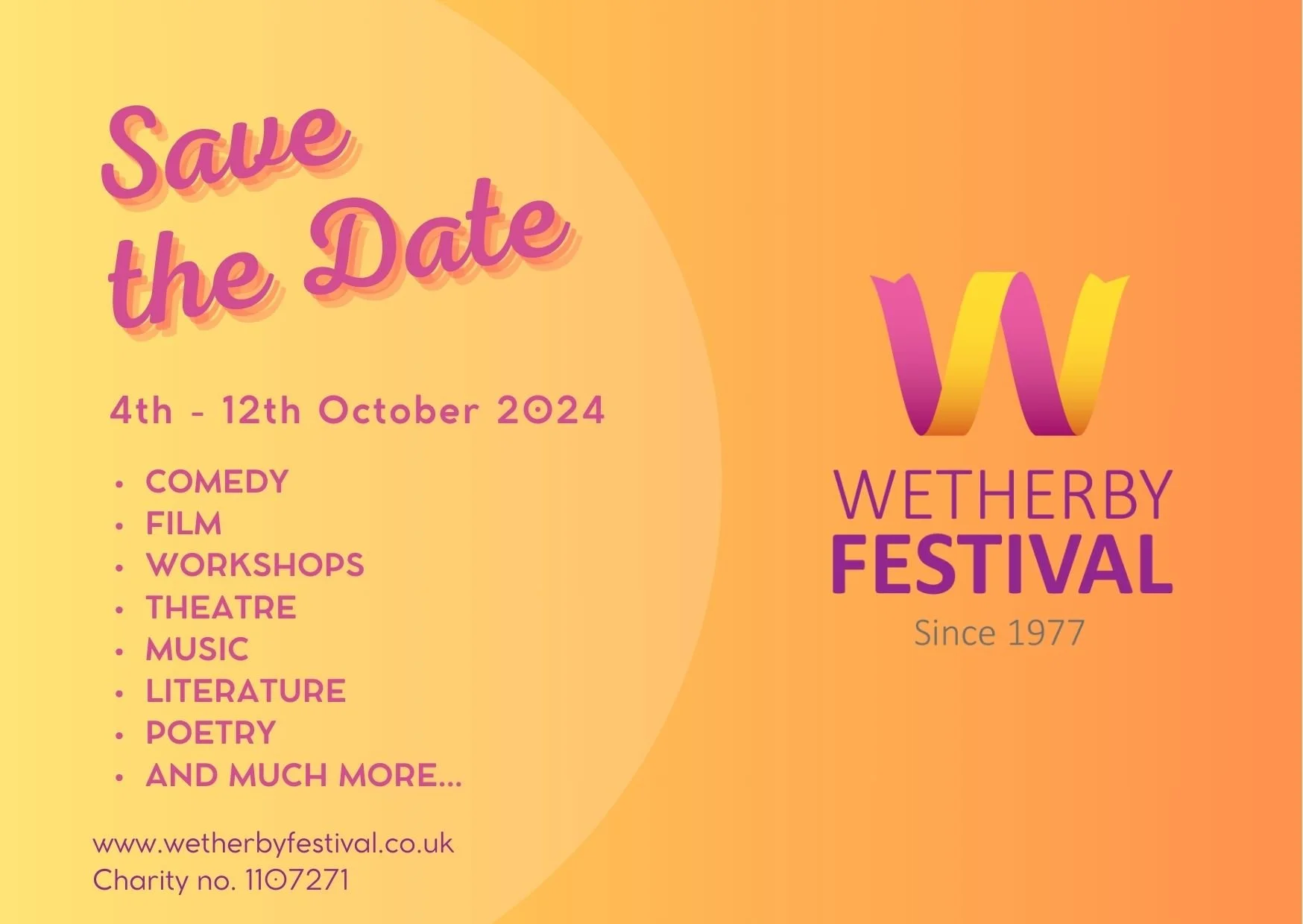 The full event schedule, together with the usual ticket-buying facility, will soon be available at wetherbyfestival.co.uk and we will be opening the Box Office for those of you who prefer physical tickets.