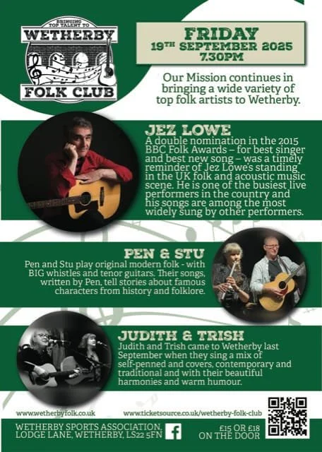 Another great line up in September. Don’t forget the Folk Club joins the Festival in October. Find out all about it at wetherbyfestival.co.uk.